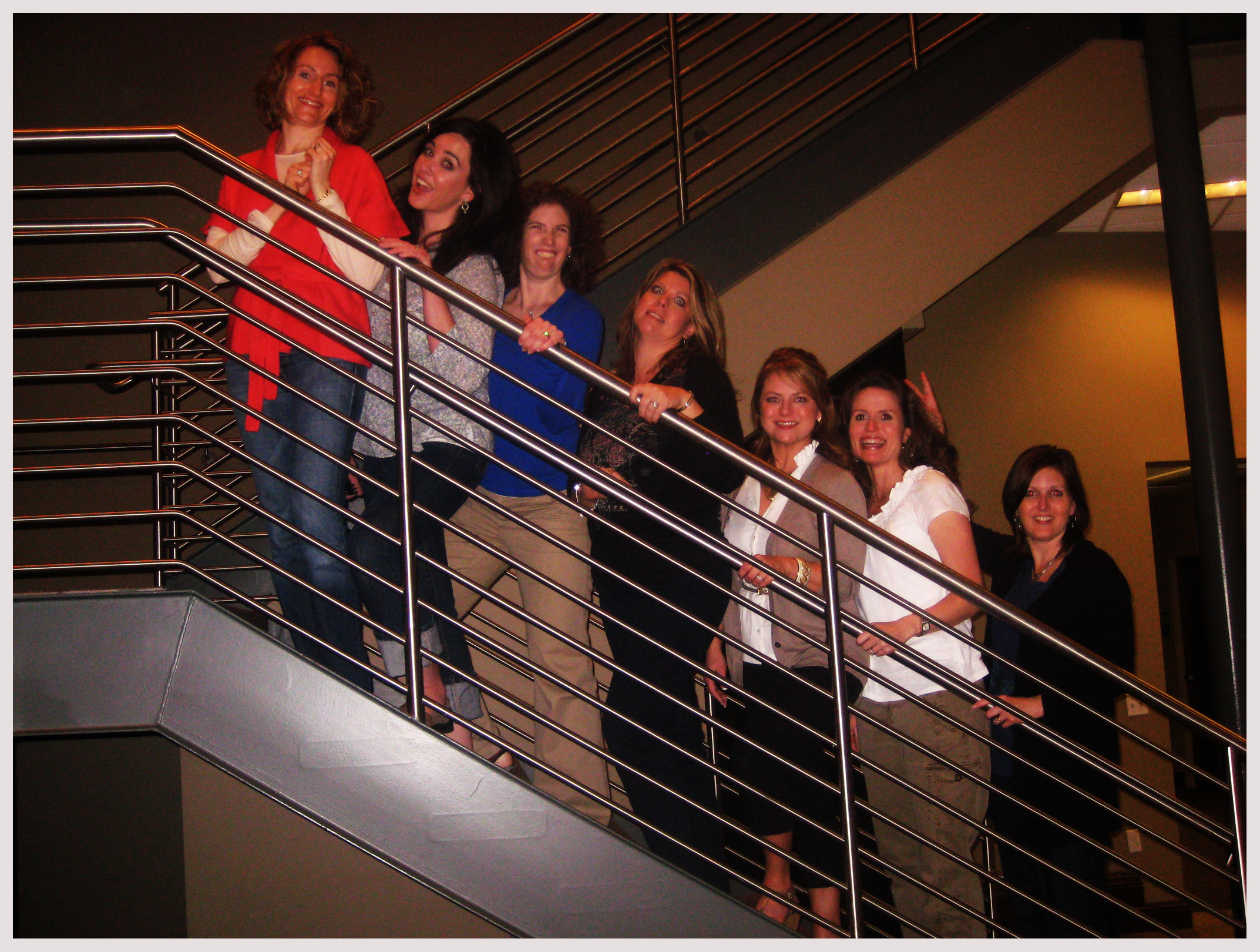 Following this lovely “normal” shot, for the second photo, I yelled “Do something goofy!” And 8 seconds later, the timer went off, the result of which is below. Apparently, this group’s interpretation of goofy is quite different from mine. We have bunny ears (really, Jennifer?), glamor shots (come ON, Heather!). We have a couple of tilted heads. And we have monstrously disfigured. I’ll let you try to figure out which one I am. Even 1000 words wouldn’t cover this one.