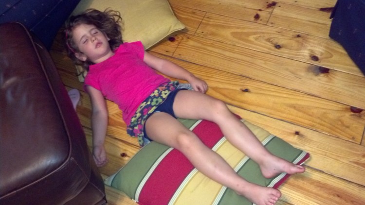 That was 5:10 p.m. I carried her to bed. We’ll see how that goes…