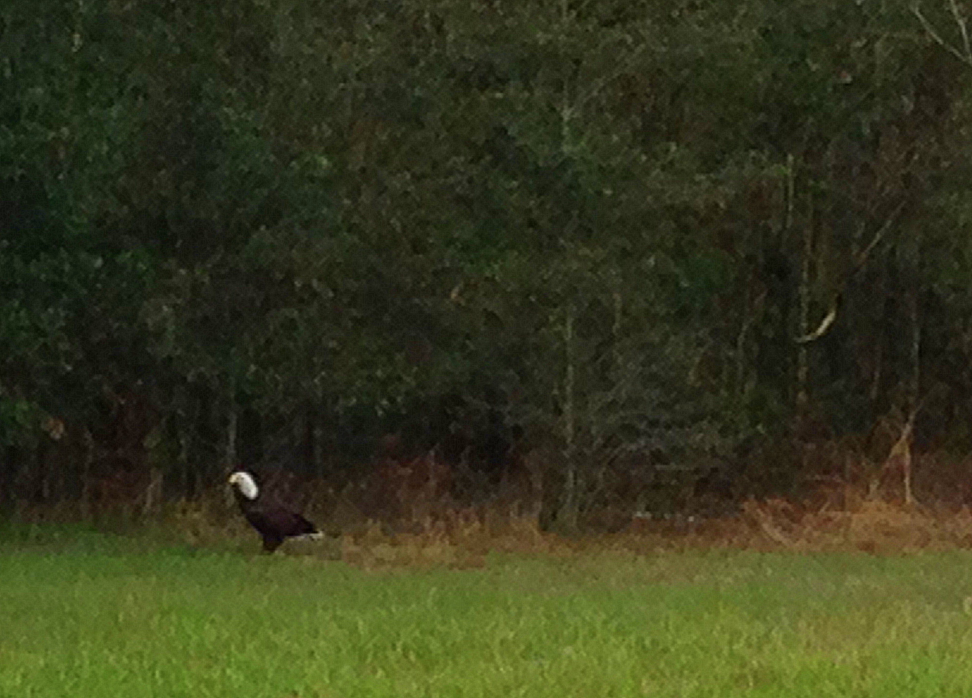 There were extra kids at my house, helping celebrate freedom, Martin Luther King Jr., and a day off of school. We had decided, since it was below 80 and actually not going to be hot, to build a little campfire that we’d keep going a lot of the day. S’mores, chatting, etc. It was going to be nice. So I was out in the yard gathering my fire supplies when my oldest boy ran to me breathless and said, “Mom, there’s a bald eagle in the yard. Come quick. There’s an eagle.”