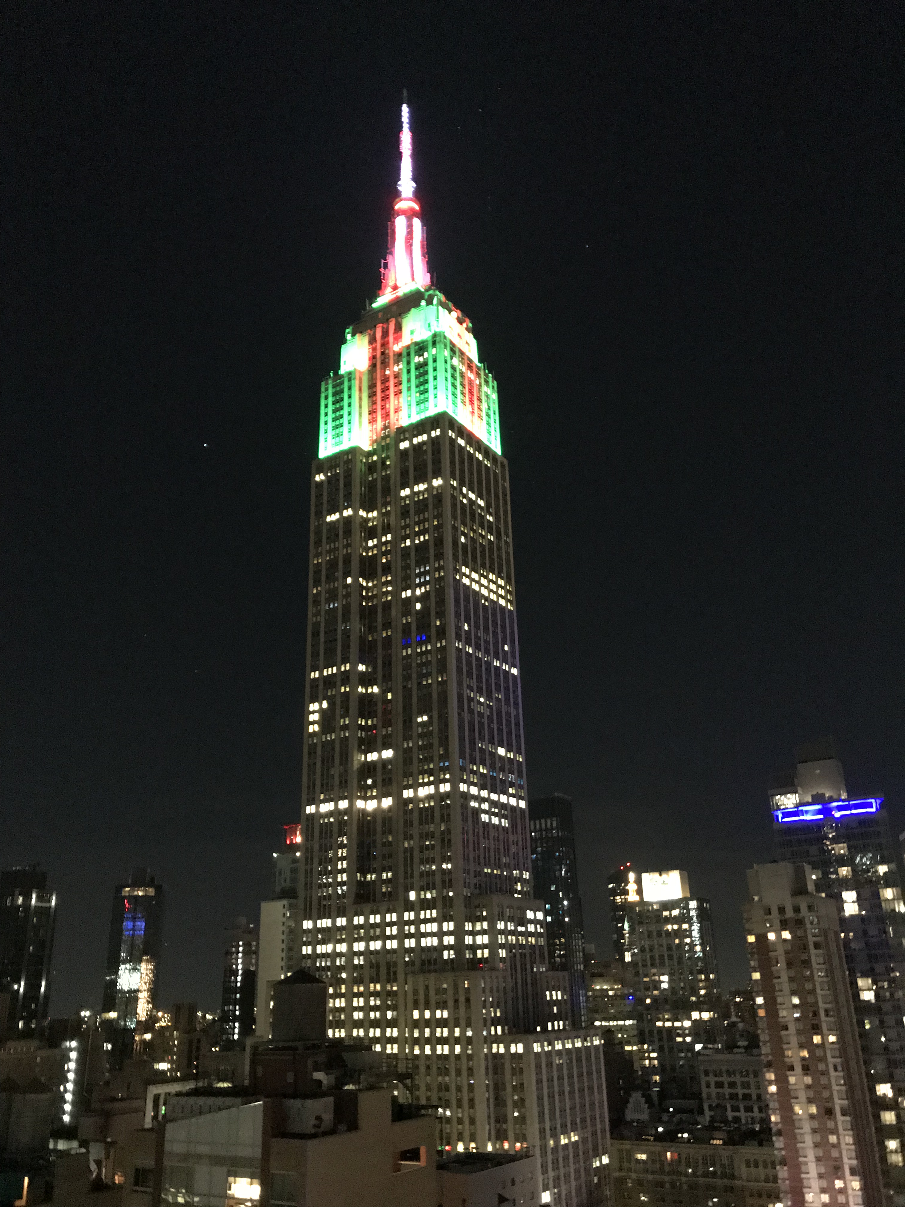 The red and green light show put on by the empire State building.
