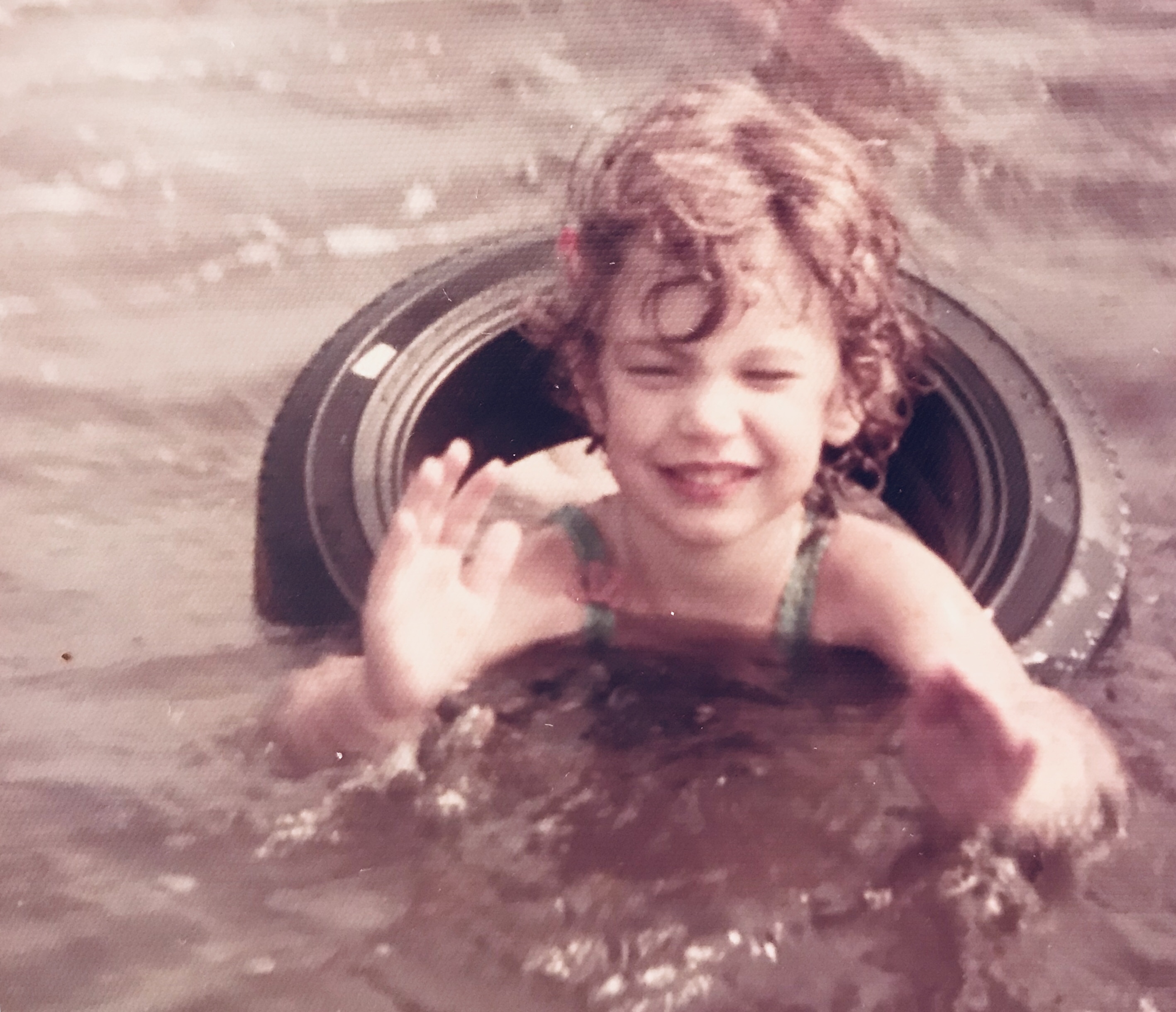 I was almost asleep against my own knees when I heard the screen door slap behind me. My mother and grandmother were standing behind me, smiling and dressed to swim. I grabbed my plastic tire and took off, skipping steps as I went. I was the first one in the water. I don’t know why that mattered growing up. It was important to be the first one in. Somehow I felt it made me the guardian of the sea. The guardian in the plastic tire.