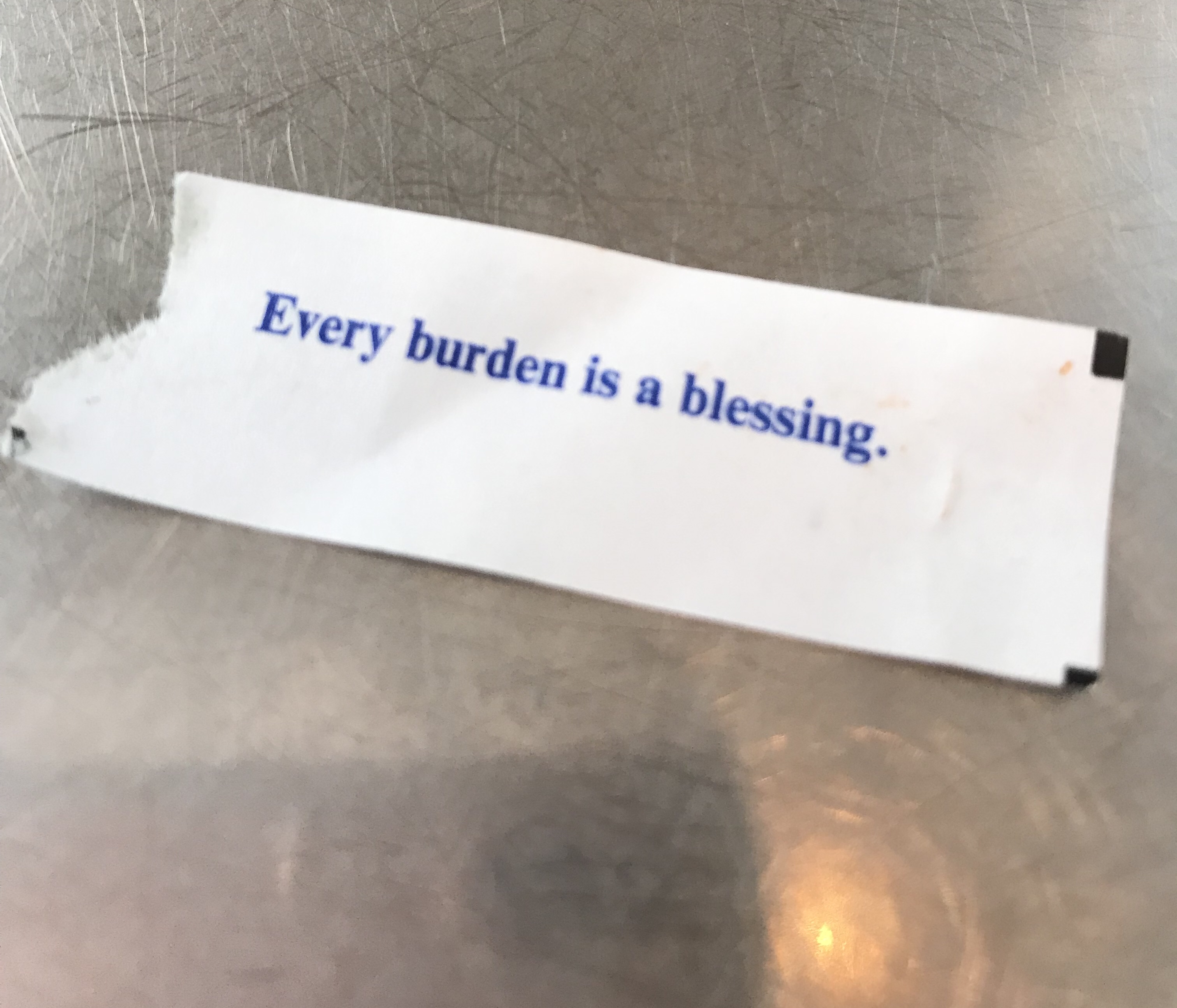 Every burden can be a blessing. I know this is true because I recently got it in a fortune cookie. Also, it’s in the bible. And I’ve lived it. But a person must be willing to be a conduit for the transition. Let it happen.
