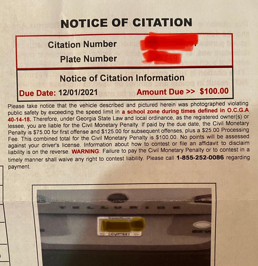 Dang it. Of all the things. After all the abuse I had endured from my friends, now I was receiving notice from the state of Georgia, by way of some law enforcement agency in Chatham County, Tennessee that the vehicle “pictured and described herein was photographed violating public safety in a school zone.” I was clocked going 58 in a 45. They apparently wouldn’t have enforced it if I’d been going 56. But of course.