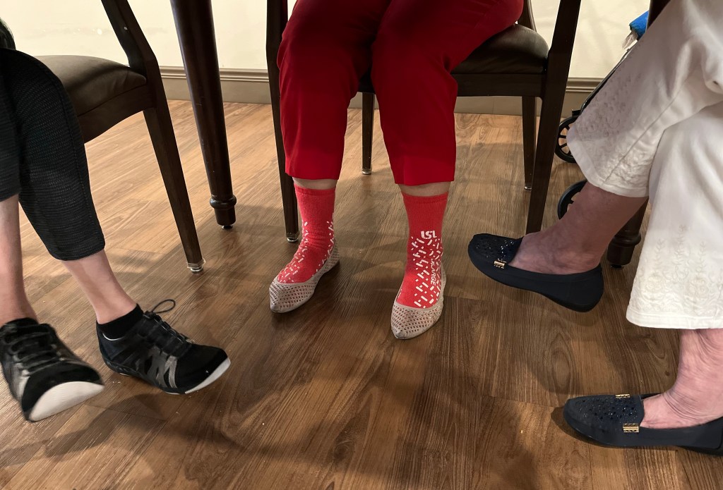 But speech pathology is not where she spends most of her time these days. These days, we are of the age where our parents are the old ones. So Melissa spends a lot of unpaid time in her mother’s nursing home. She lost her dad to Covid in July. Her mom, Myrna, who has been duking it out with dementia since 2008, now lives in a memory care facility with the likes of Carolyn, Leo, Kay, Francis, Mary, a guy who plays a mad harmonica, and Pauline. On any given afternoon, you can find Kay wandering the halls and disappearing into any room with an open door.